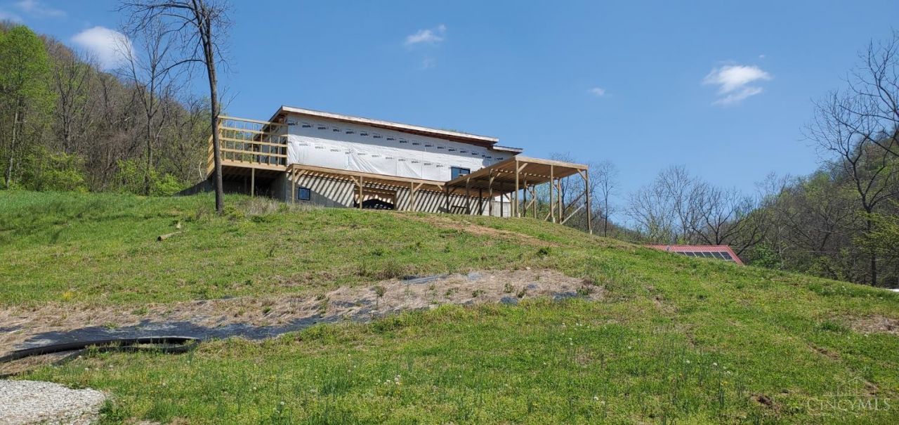 Discover a rare opportunity to own nearly 35 acres of scenic beauty along Three Mile Creek, just moments from the Ohio River. This unique property blends natural charm with modern sustainability and business or campground potential.The property features a charming A-frame home offering 2 bedrooms and 2 bathrooms, with approximately 1,314 square feet of living space. The spacious living room boasts picturesque views overlooking the creek, creating a peaceful retreat surrounded by nature. The home is fully powered by solar energy, providing efficiency and off-grid appeal. In addition to the residence, the property includes a brand-new 3,120...read more